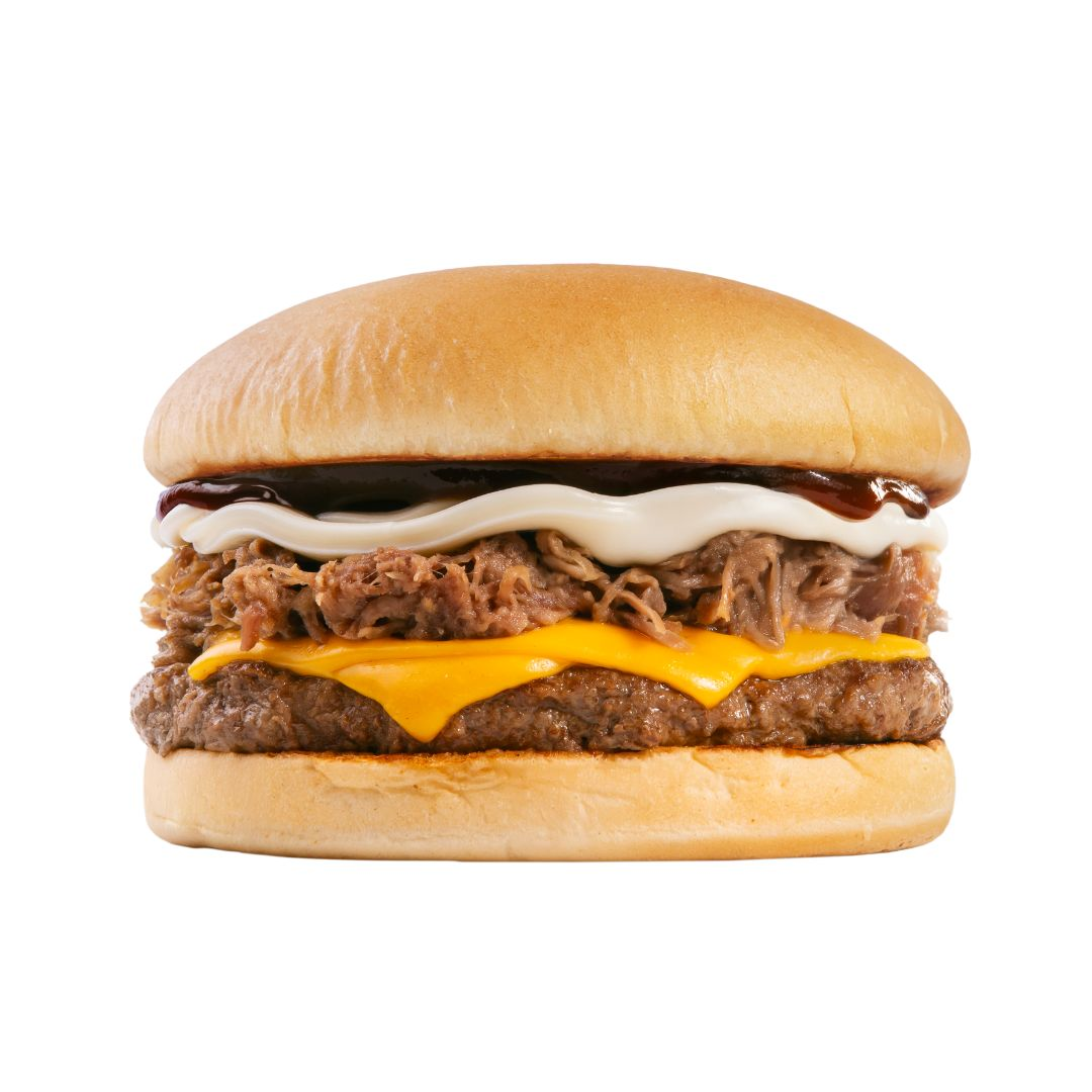 Pão, maionese artesanal, 140g de carne bovina, queijo mussarela, alface americana, tomate, cebola roxa e barbecue.